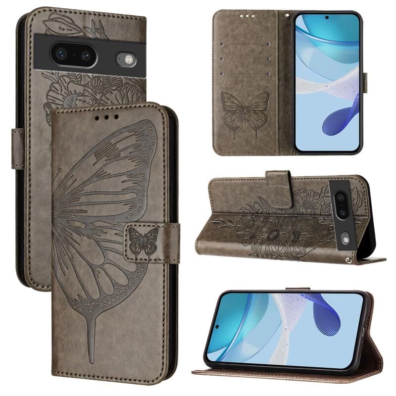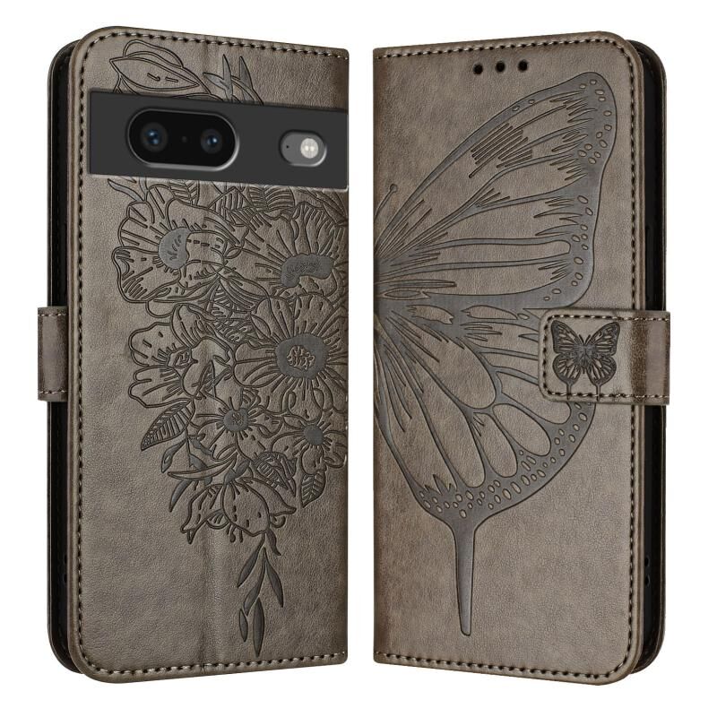 For Google Pixel 7 Embossed Butterfly Leather Phone Case(Grey)