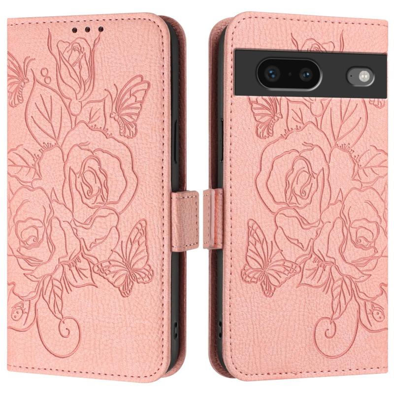 For Google Pixel 7 Embossed Rose RFID Anti-theft Leather Phone Case(Pink)