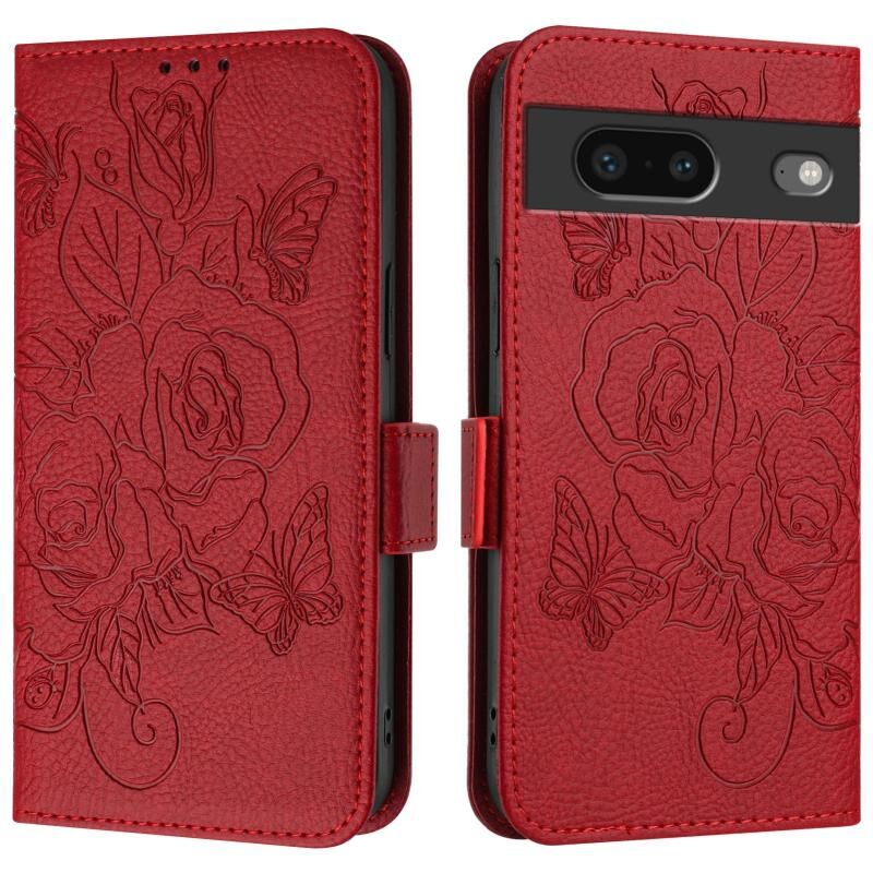 For Google Pixel 7 Embossed Rose RFID Anti-theft Leather Phone Case(Red)