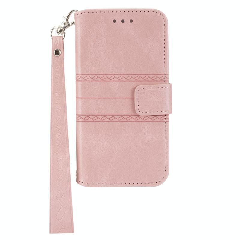 Για Google Pixel 7 ανάγλυφο ριγέ μαγνητική πόρπη οριζόντια Flip τηλέφωνο δερμάτινη θήκη (ροζ)