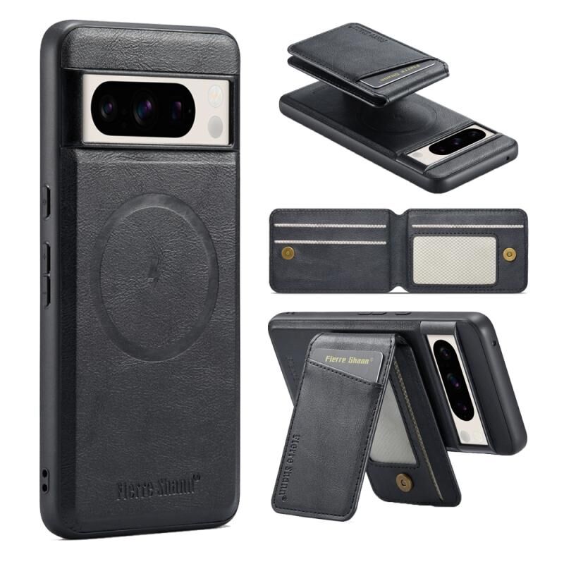For Google Pixel 7 Fierre Shann Cowhide Vertical Flip Magnetic Card Holder Phone Case(Black) (FIERRE SHANN)