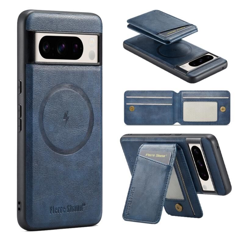 For Google Pixel 7 Fierre Shann Cowhide Vertical Flip Magnetic Card Holder Phone Case(Blue) (FIERRE SHANN)