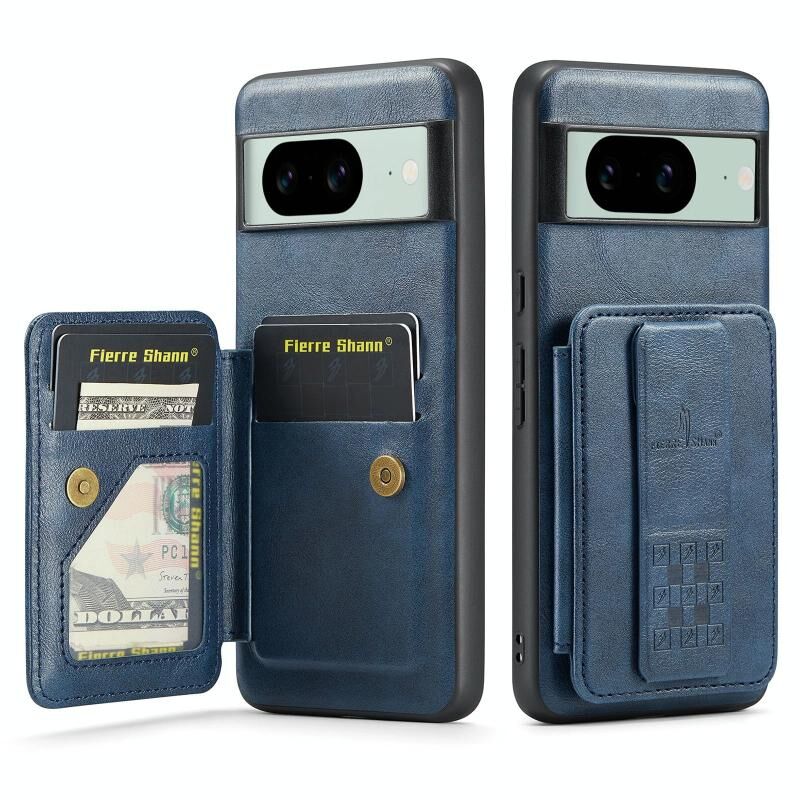 Για το Google Pixel 7 Fierre Shann Oil Wax Cow Leather Card Holder Back Phone Case(Blue) (FIERRE SHANN)