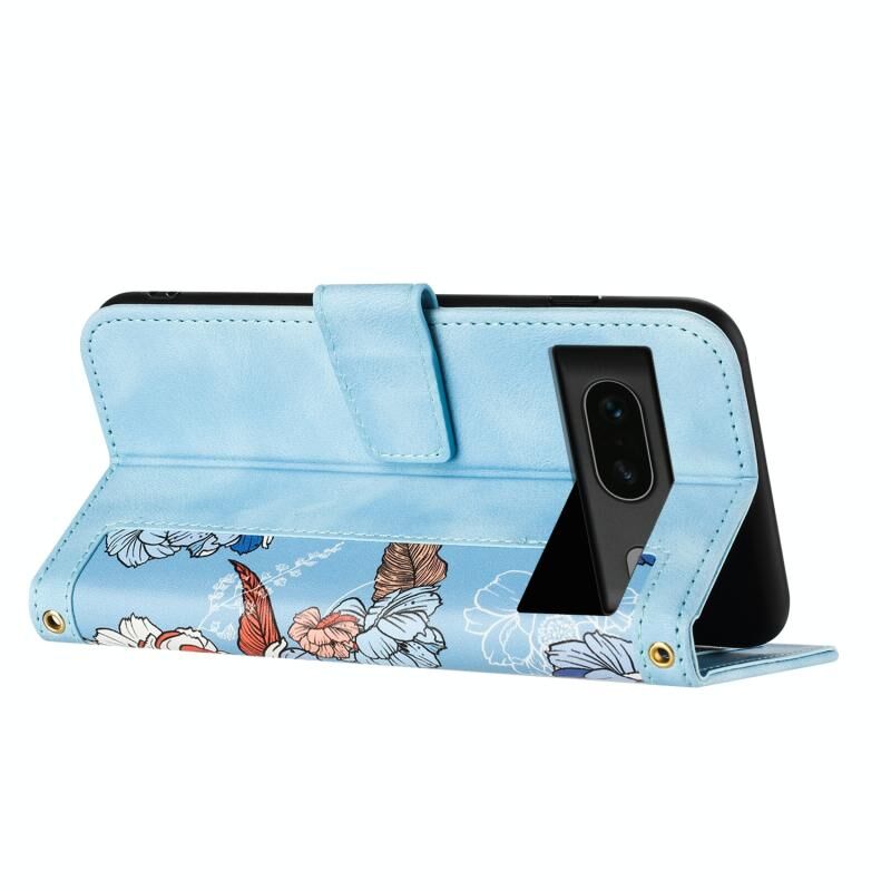 Θήκη τηλεφώνου από δέρμα με λουλουδάτο σχέδιο για Google Pixel 7 με κορδόνι (Ανοιχτό Μπλε)