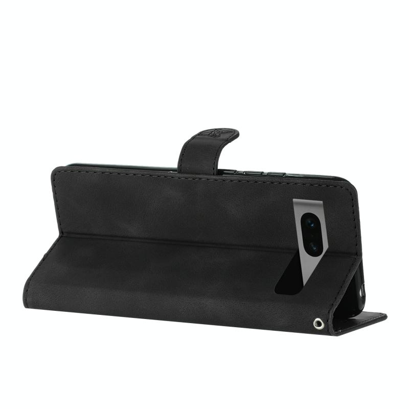 Θήκη τηλεφώνου δερμάτινη με ανάγλυφο σχέδιο λουλουδιών και πεταλούδων για Google Pixel 7 (Μαύρο)