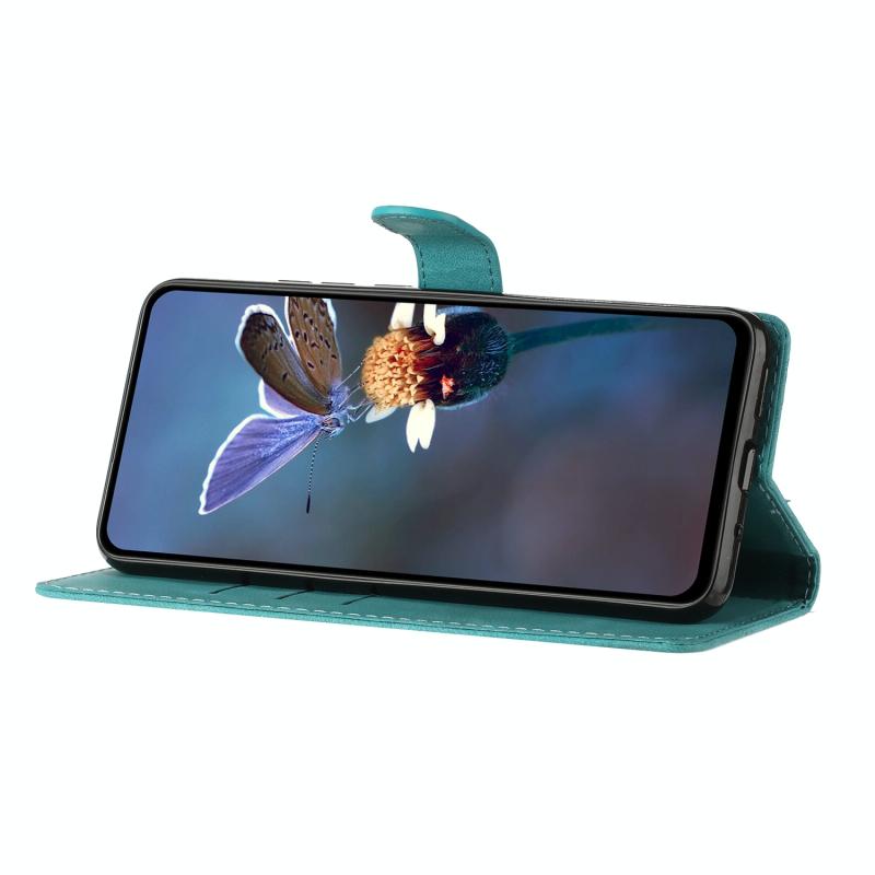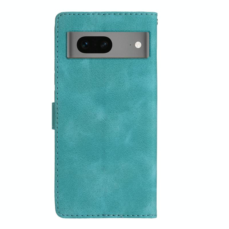 Θήκη τηλεφώνου δερμάτινη με ανάγλυφο σχέδιο λουλουδιών και πεταλούδων για Google Pixel 7 (Γαλάζιο του ουρανού)
