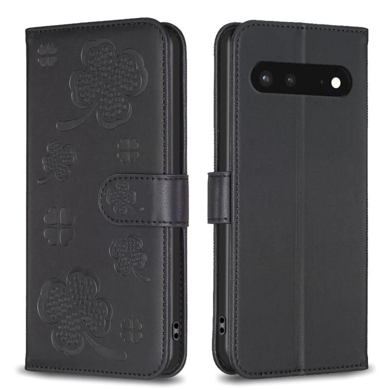Για το Google Pixel 7 Four-leaf ανάγλυφη δερμάτινη θήκη τηλεφώνου (Μαύρο)