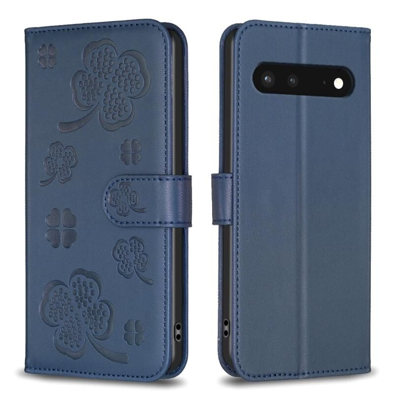 Για το Google Pixel 7 τετράφυλλο ανάγλυφη δερμάτινη θήκη τηλεφώνου (μπλε)