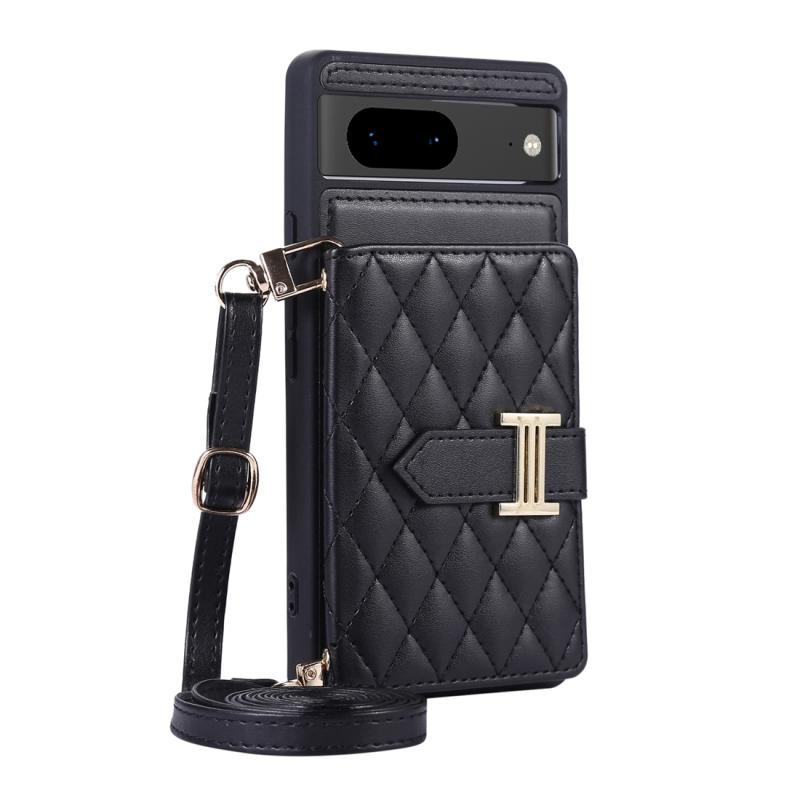 For Google Pixel 7 Horizontal Card Bag Phone Case with Dual Lanyard(Black)