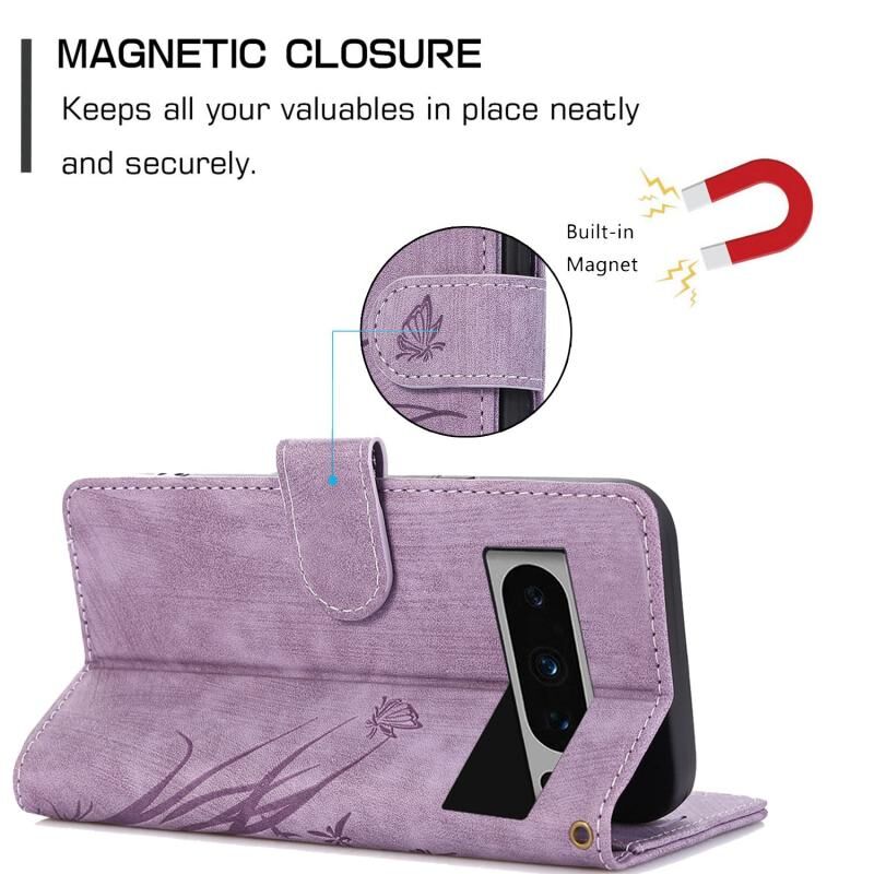 Θήκη τηλεφώνου Google Pixel 7 Orchid Butterfly Embossed Leather (Μαύρο)