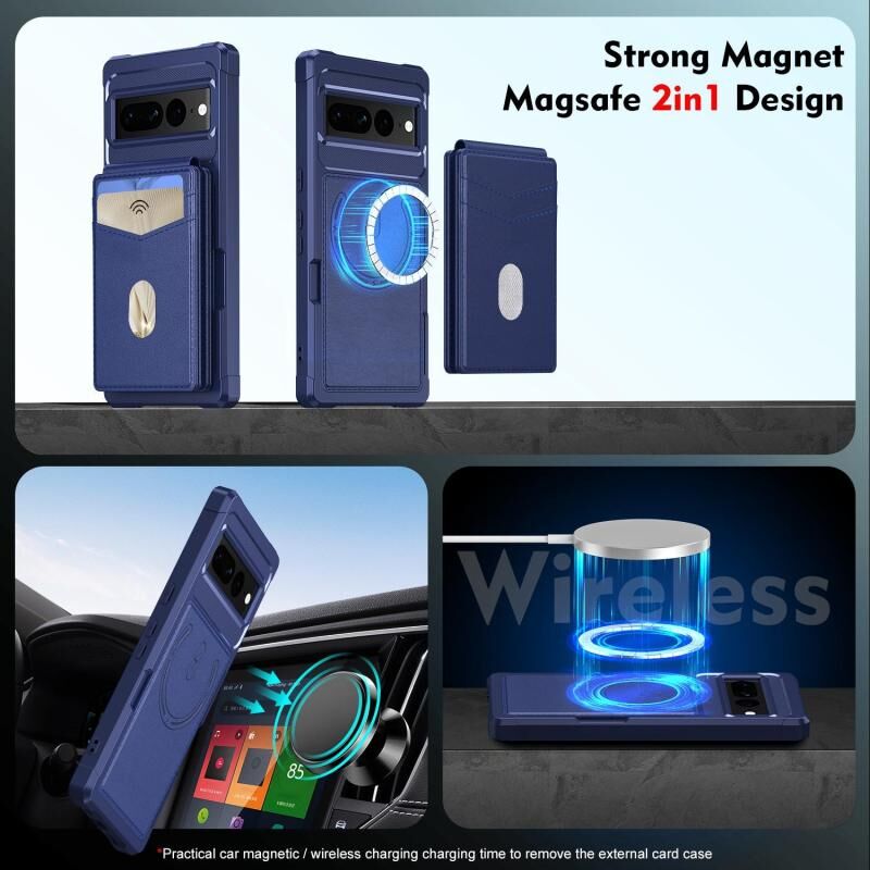 For Google Pixel 7 Pro 2-in-1 RFID Wallet Magnetic MagSafe Leather Phone Case(Blue)