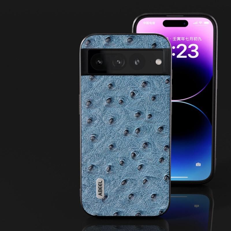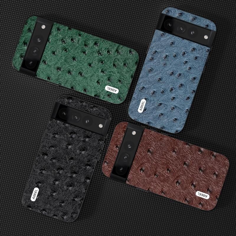 Θήκη τηλεφώνου από γνήσιο δέρμα στρουθοκάμπου με υφή για Google Pixel 7 Pro 5G ABEEL (Πράσινο)