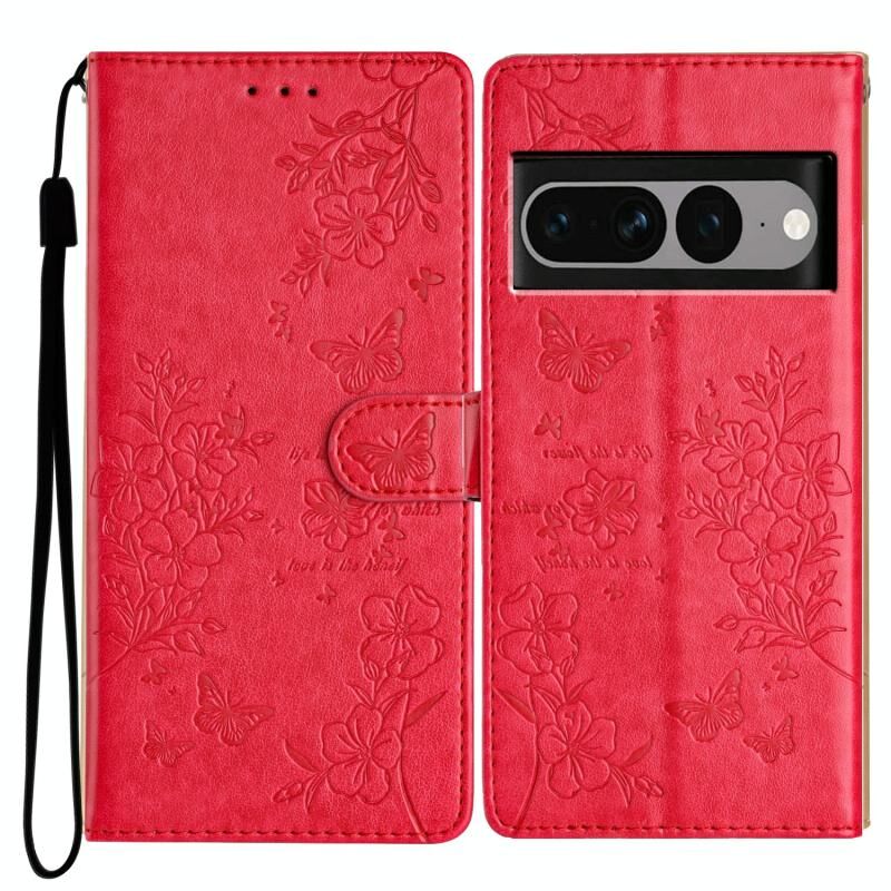 Θήκη τηλεφώνου από δέρμα για Google Pixel 7 Pro 5G, με σχέδια πεταλούδες και λουλούδια (Κόκκινο)