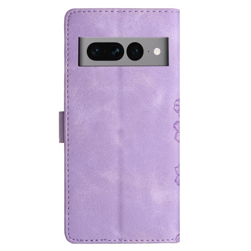 For Google Pixel 7 Pro 5G Cherry Blossom Butterfly Skin Feel Embossed PU Phone Case(Purple)