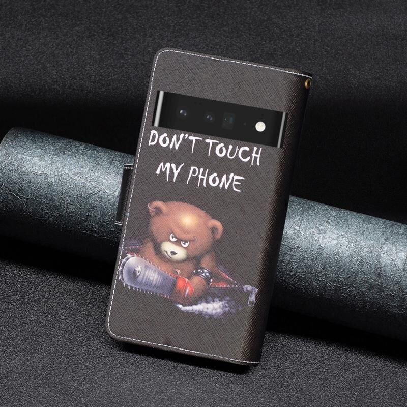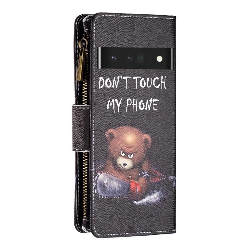 Θήκη τηλεφώνου δέρματινη οριζόντια με φερμουάρ και σχέδιο ζωγραφικής με χρώματα για Google Pixel 7 Pro 5G (Αρκούδα)