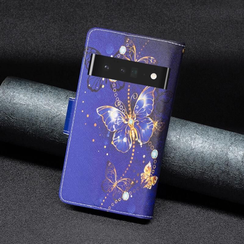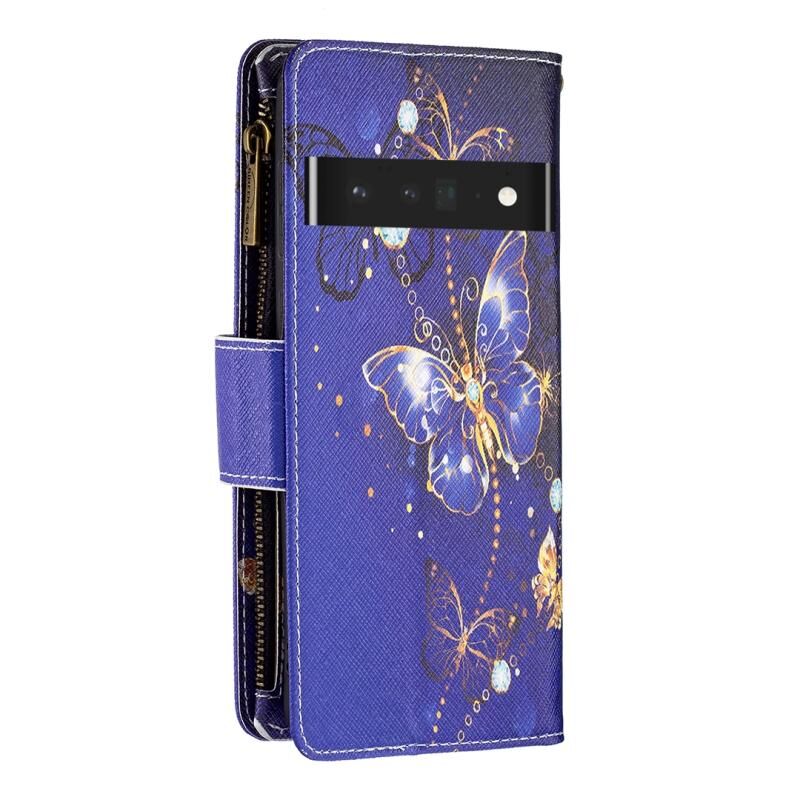 Θήκη τηλεφώνου δερμάτινη οριζόντια με φερμουάρ και σχέδιο ζωγραφικής πολύχρωμο για Google Pixel 7 Pro 5G (Μωβ Πεταλούδα)
