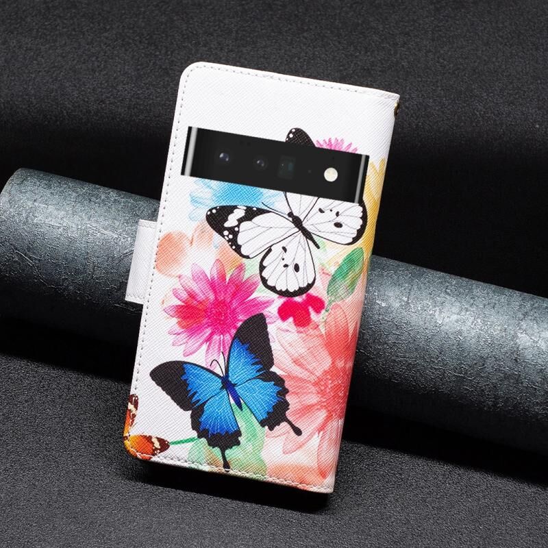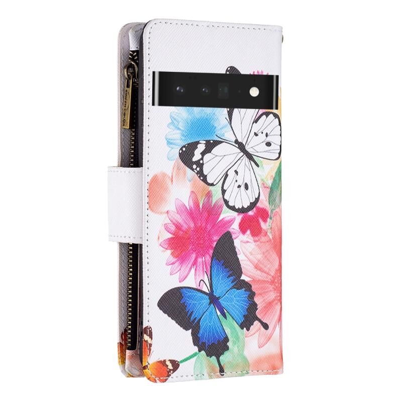 Θήκη τηλεφώνου δερμάτινη οριζόντια με φερμουάρ και σχέδιο ζωγραφικής με χρώματα για Google Pixel 7 Pro 5G (Δύο Πεταλούδες)