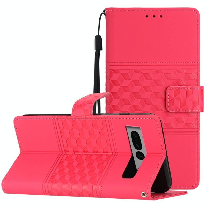 Για το Google Pixel 7 Pro 5G Diamond Embossed Skin Feel Δερμάτινη θήκη τηλεφώνου με κορδόνι (κόκκινο)