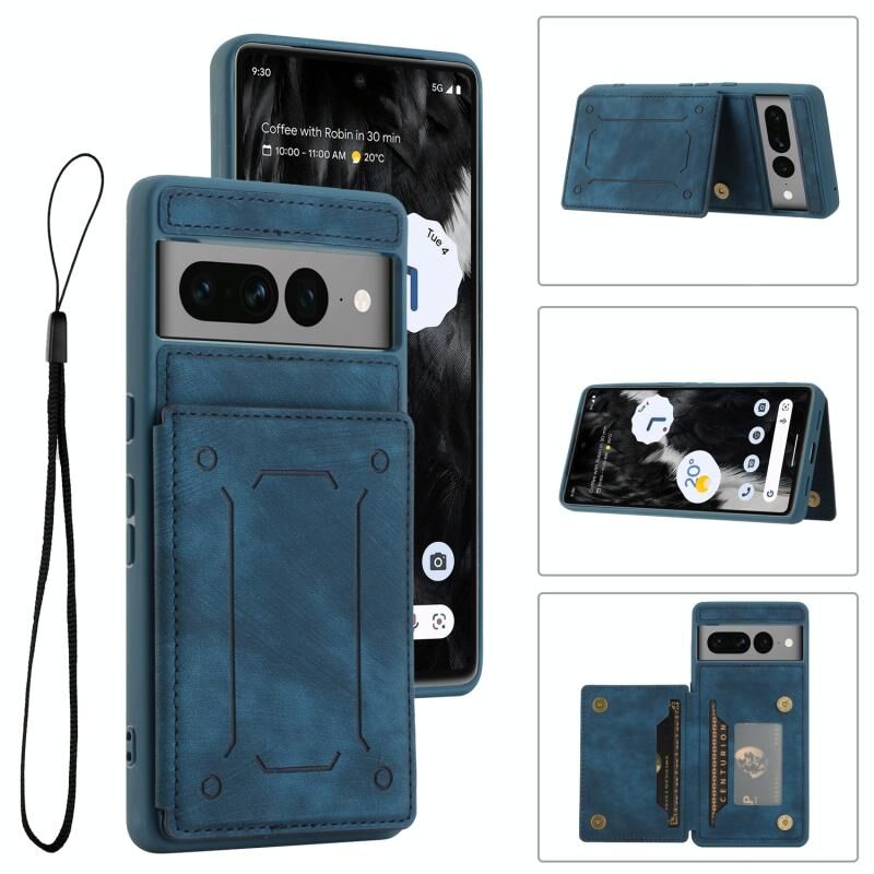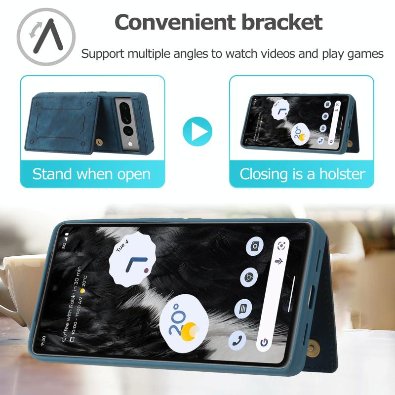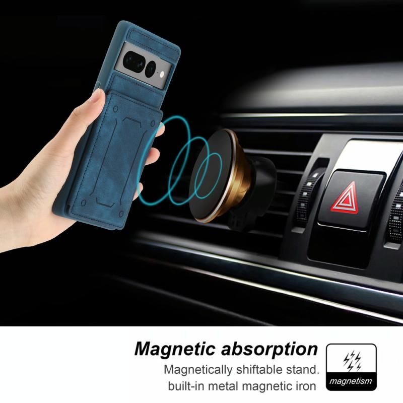 Θήκη κινητού τηλεφώνου με μαγνητικό πίσω κάλυμμα και θήκη καρτών για Google Pixel 7 Pro 5G (Μπλε)