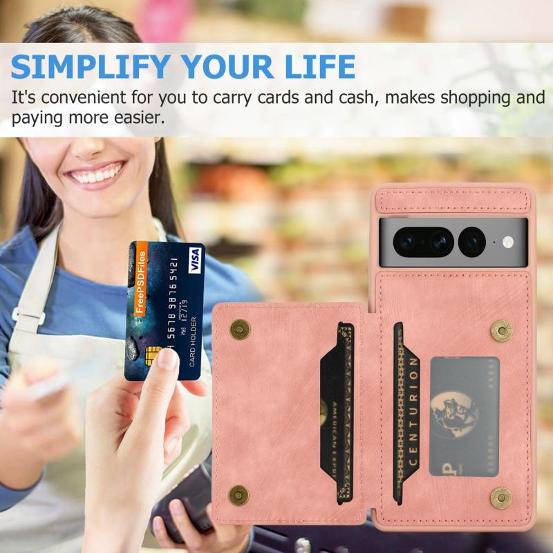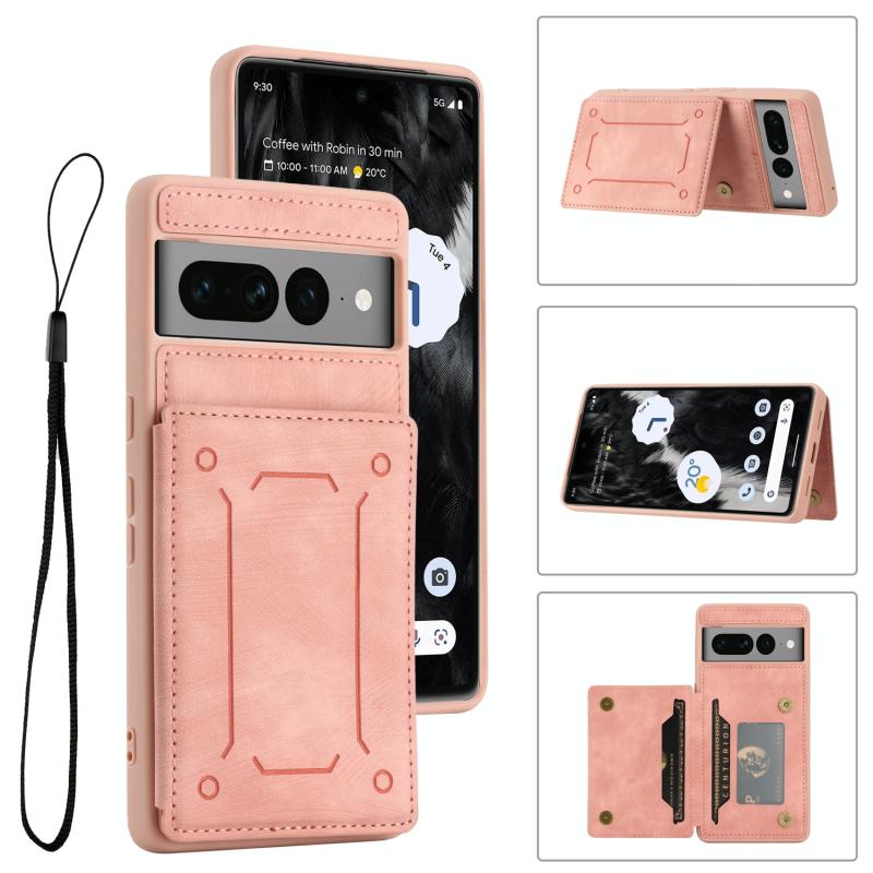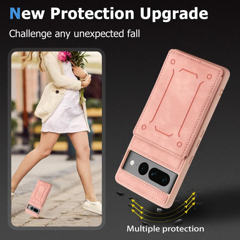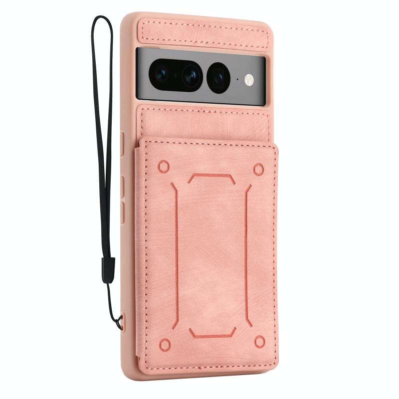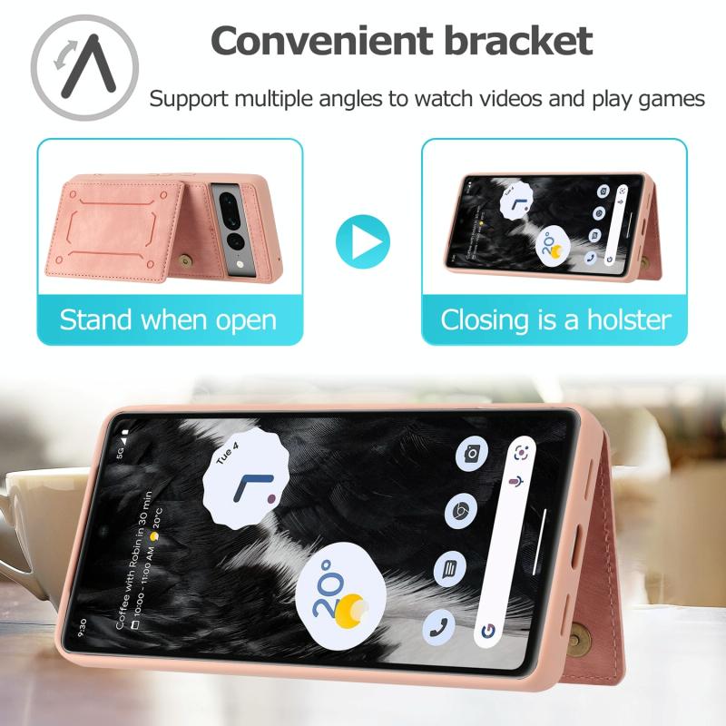 Θήκη κινητού τηλεφώνου με μαγνητικό πίσω κάλυμμα και θήκη καρτών για Google Pixel 7 Pro 5G (ρόζ)