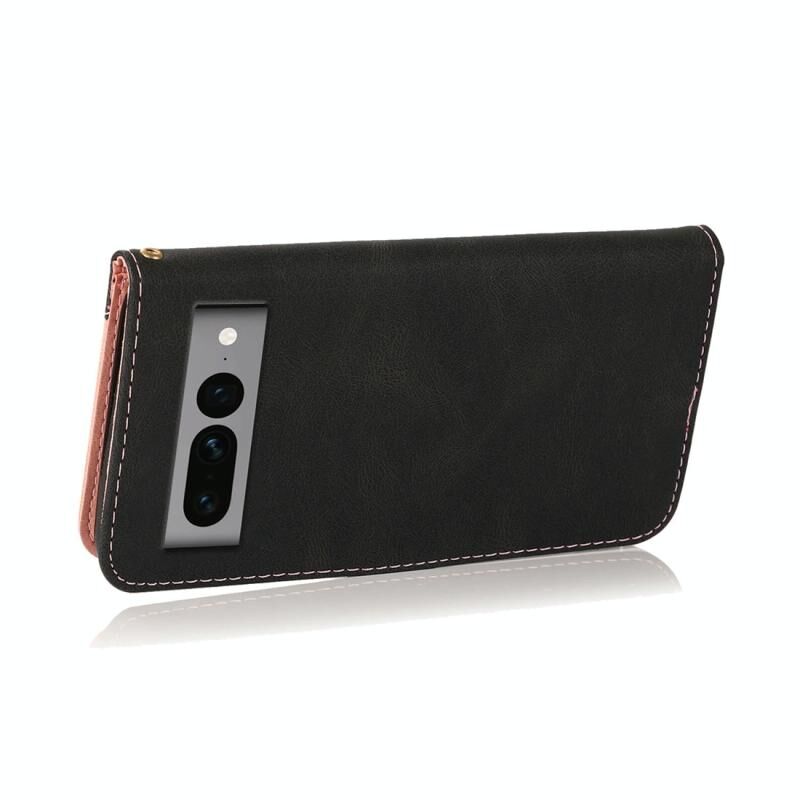 Για το Google Pixel 7 Pro 5G Διπλό χρώμα Stitching Δερμάτινη θήκη τηλεφώνου (μαύρο ροζ χρυσό)