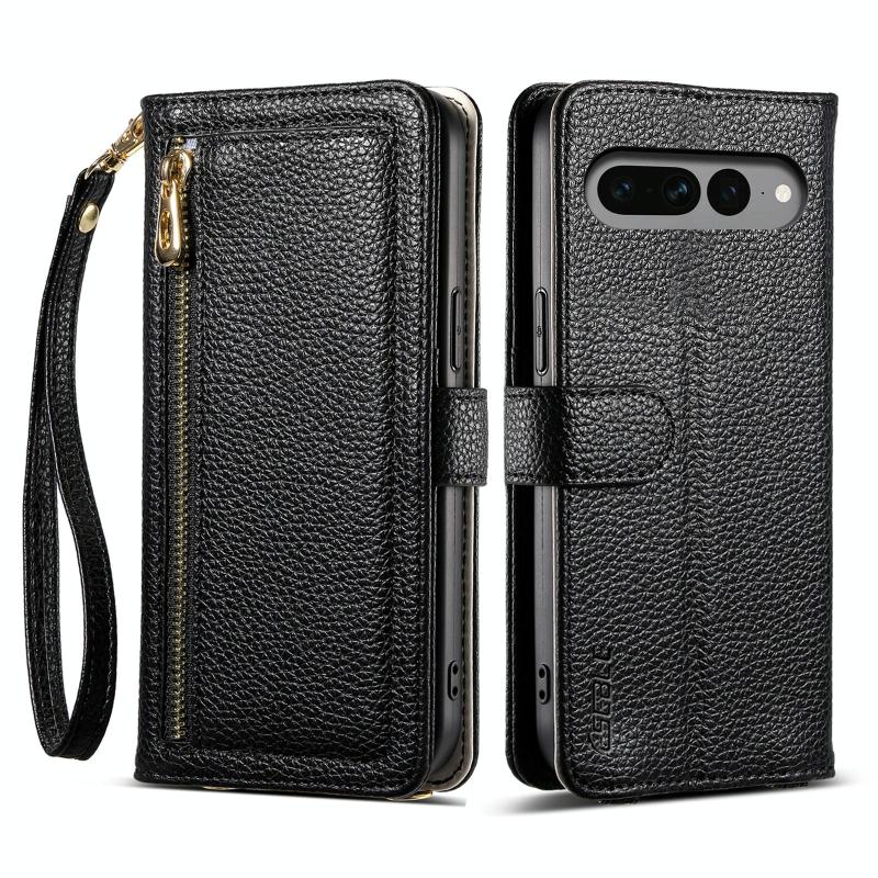For Google Pixel 7 Pro 5G ESEBLE E11 Colorful Litchi Pattern Zipper Wallet Leather Phone Case(Black) (ESEBLE)