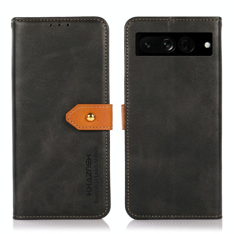 For Google Pixel 7 Pro 5G KHAZNEH Dual-color Cowhide Texture Flip Leather Phone Case(Black)