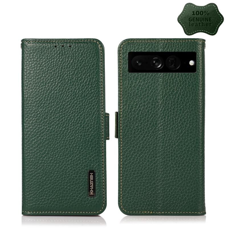 Θήκη τηλεφώνου με μαγνητικό κλείσιμο και γνήσιο δέρμα Litchi για Google Pixel 7 Pro 5G KHAZNEH (Μπλε)