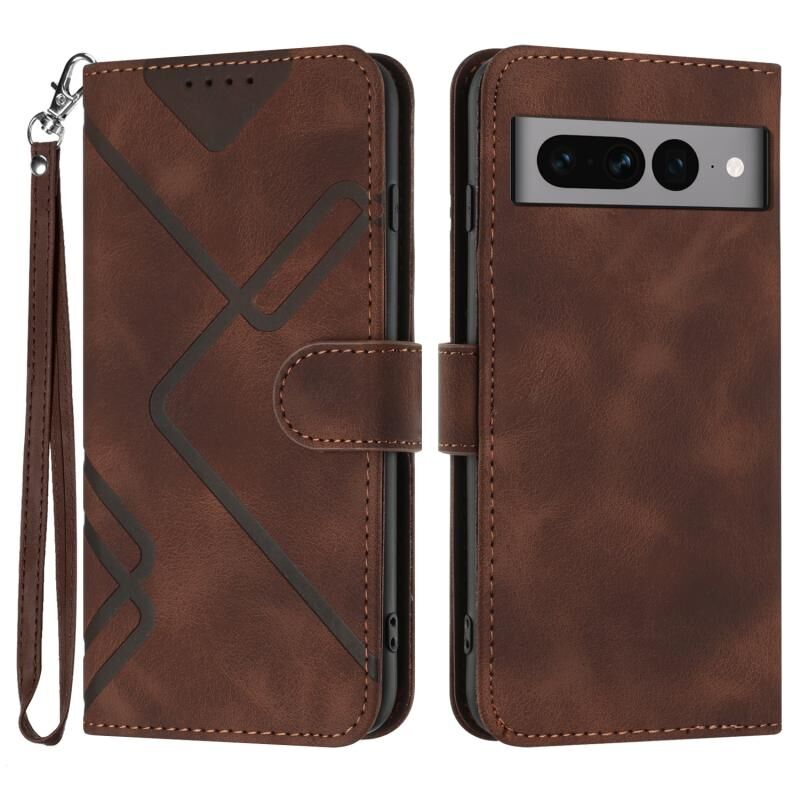 For Google Pixel 7 Pro 5G Line Pattern Skin Feel Leather Phone Case(Coffee)
