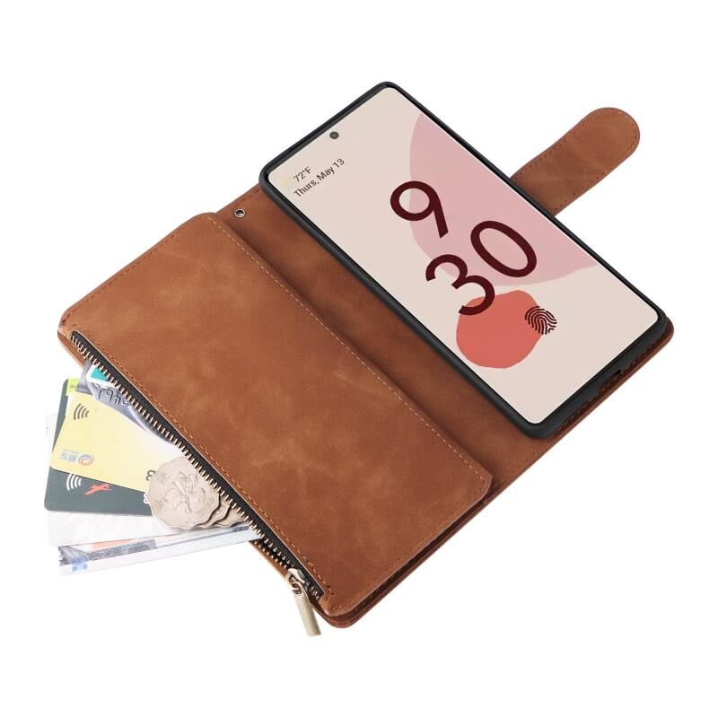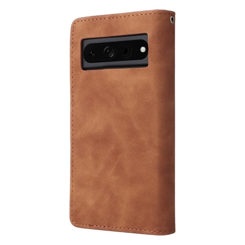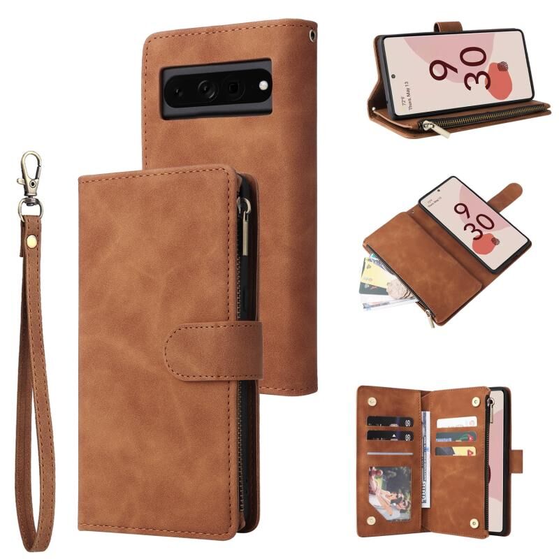 Για το Google Pixel 7 Pro 5G Πολυλειτουργικό παγωμένο φερμουάρ πορτοφόλι δερμάτινη θήκη τηλεφώνου (καφέ)