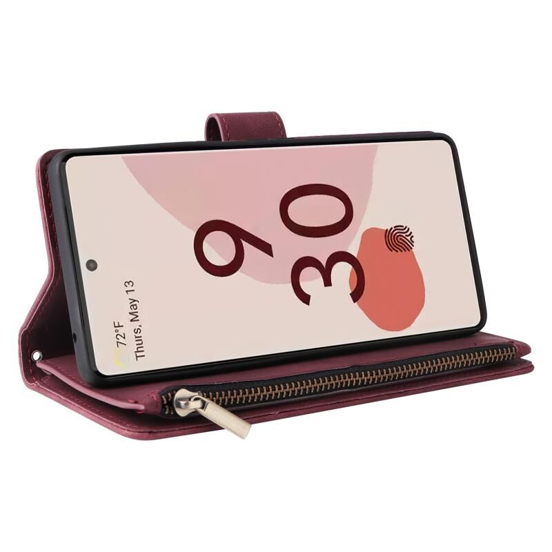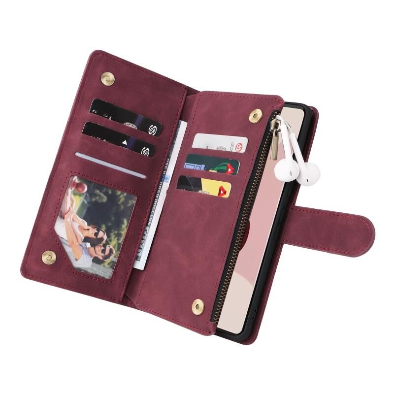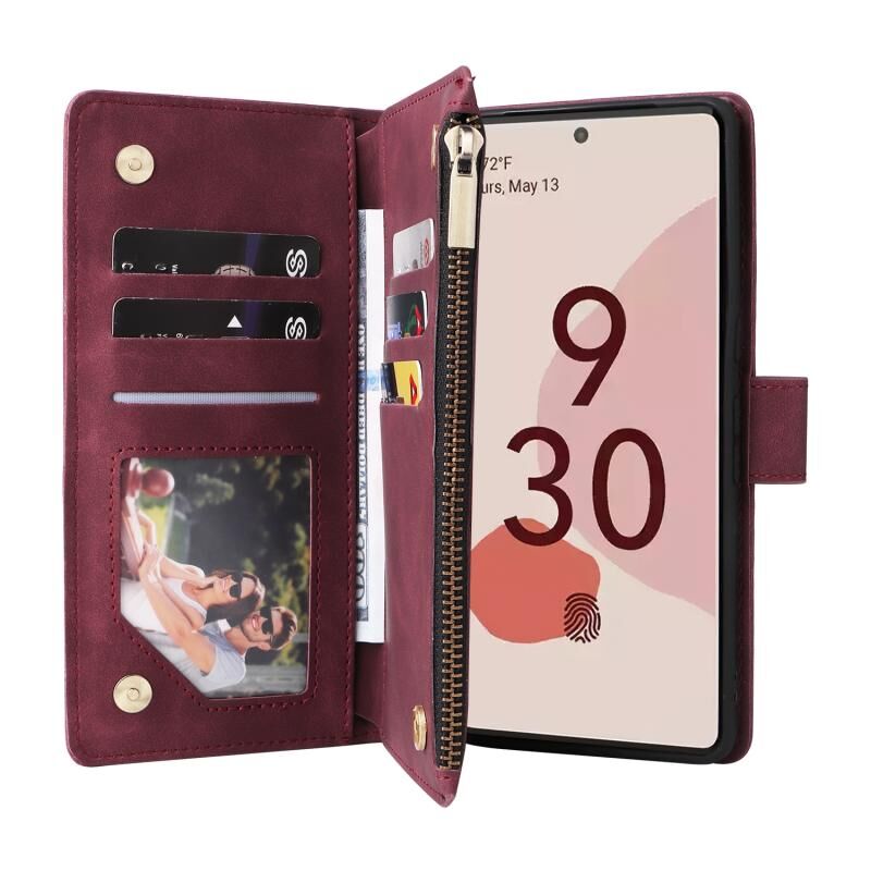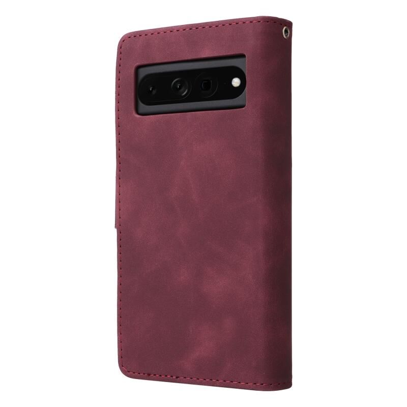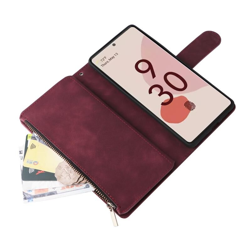 Για το Google Pixel 7 Pro 5G Πολυλειτουργική παγωμένο φερμουάρ πορτοφόλι δερμάτινη θήκη τηλεφώνου (κόκκινο κρασί)