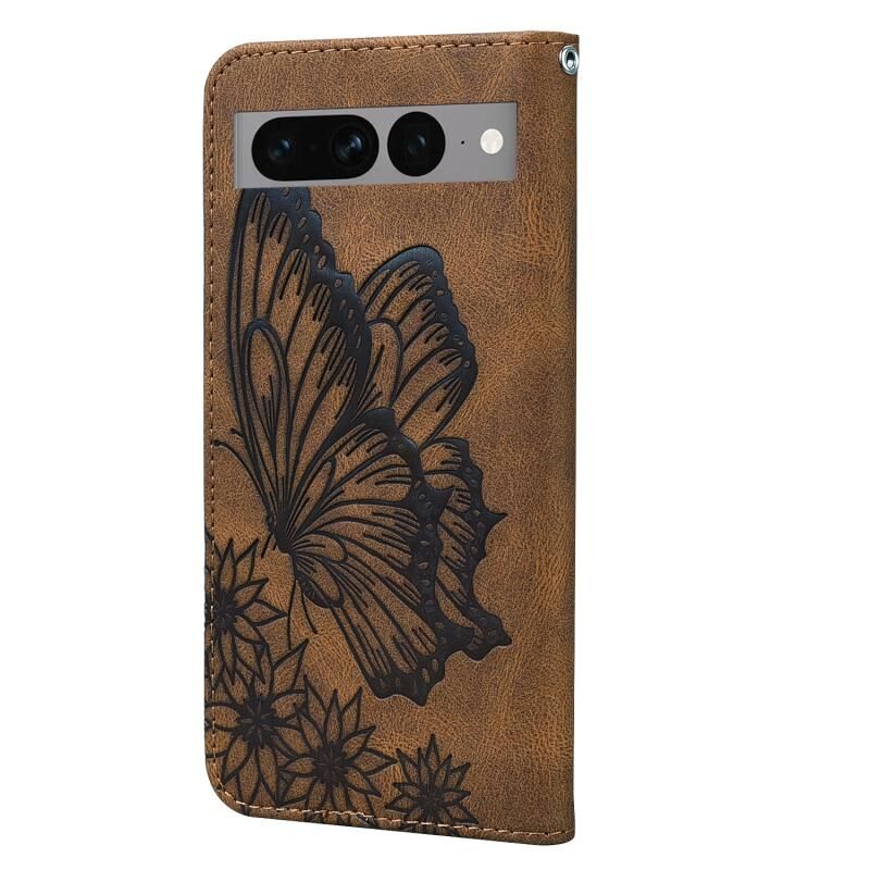 Θήκη τηλεφώνου δερμάτινη οριζόντιας αναδίπλωσης για Google Pixel 7 Pro 5G με ανάγλυφο σχέδιο πεταλούδων και αίσθηση retro (Μαύρο)