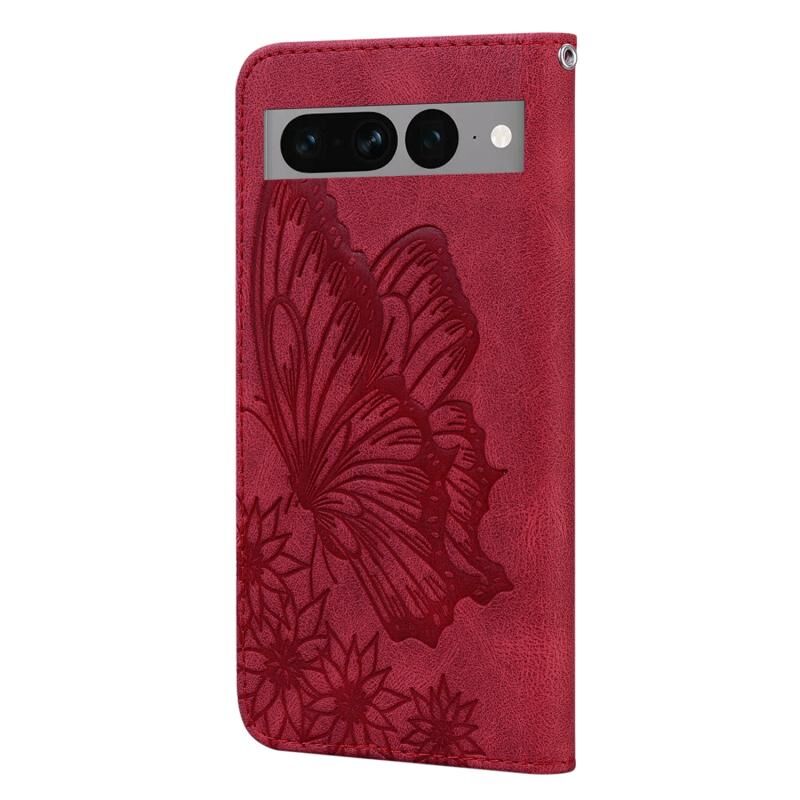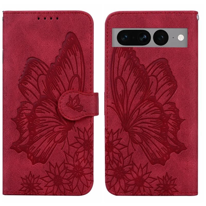Θήκη τηλεφώνου δερμάτινη οριζόντιας αναδίπλωσης για Google Pixel 7 Pro 5G με ανάγλυφο σχέδιο πεταλούδων και αίσθηση retro (Μαύρο)