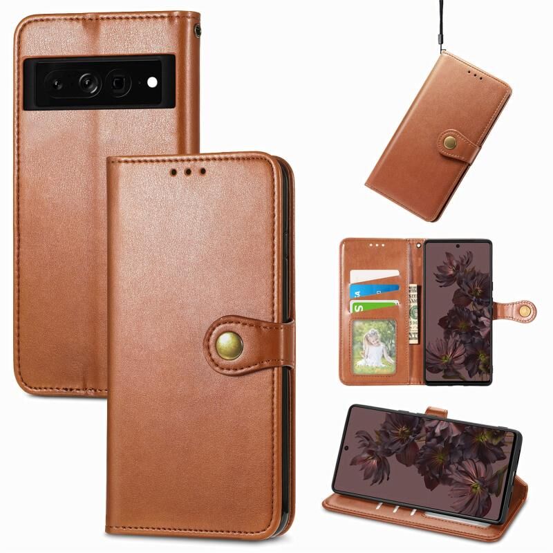 Για το Google Pixel 7 Pro 5G Ρετρό στερεό χρώμα αγκράφα δερμάτινη θήκη τηλεφώνου (καφέ)