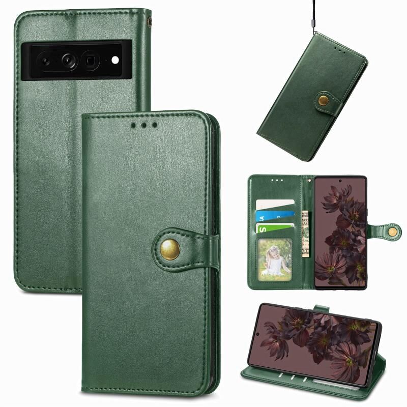 Για το Google Pixel 7 Pro 5G Ρετρό στερεό χρώμα αγκράφα δερμάτινη θήκη τηλεφώνου (πράσινο)