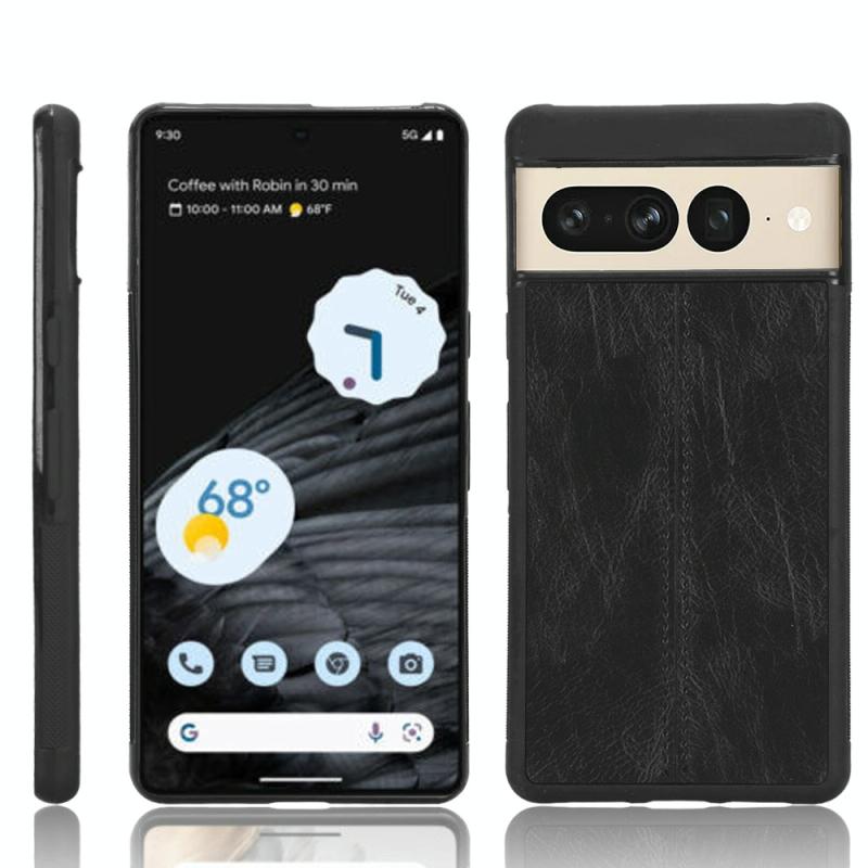 For Google Pixel 7 Pro 5G Shockproof Sewing Cow Skin Texture PC + PU + TPU Case(Black)