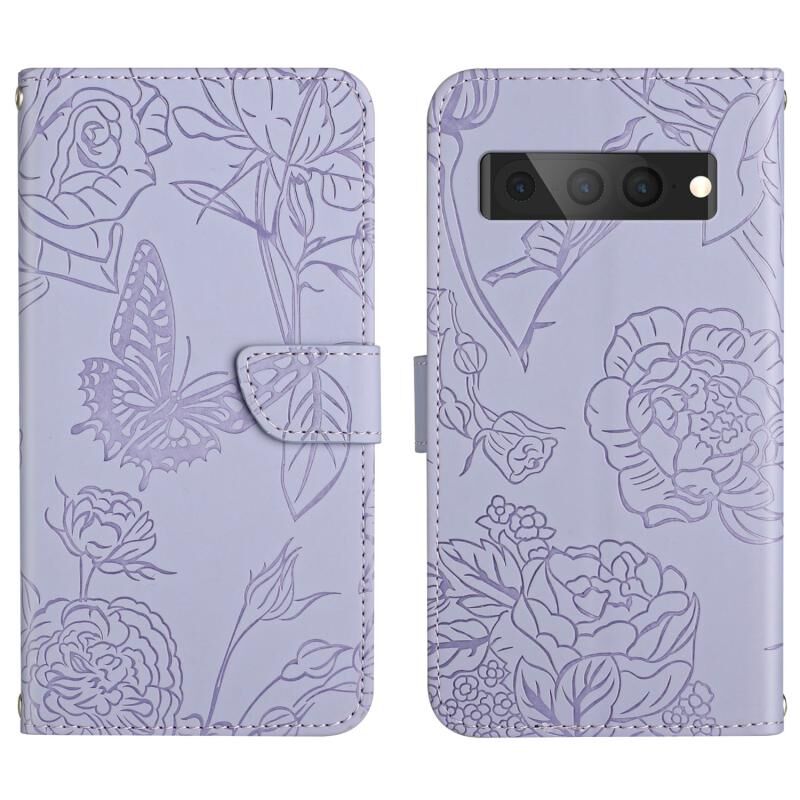 Θήκη τηλεφώνου από ανάγλυφο δέρμα με σχέδιο πεταλούδας και παιώνιας για Google Pixel 7 Pro 5G (Κόκκινο)