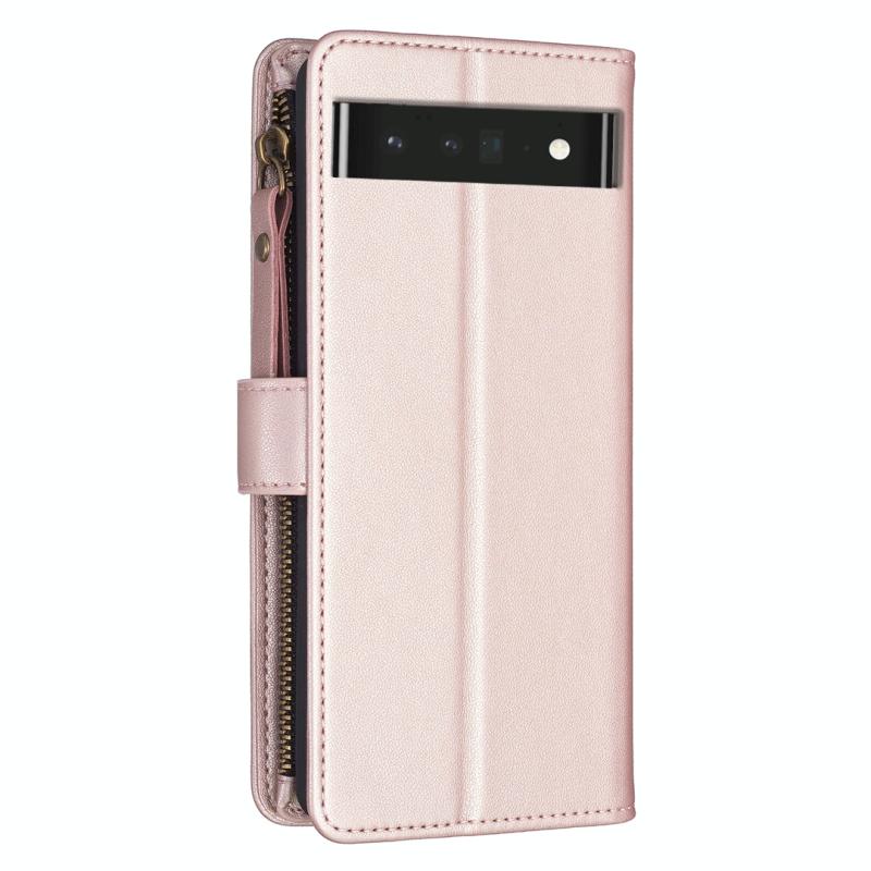 Θήκη τηλεφώνου Google Pixel 7 Pro, δερμάτινη, flip, με φερμουάρ και 9 θέσεις για κάρτες (ανοιχτό μωβ)