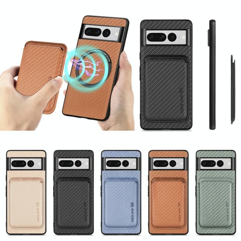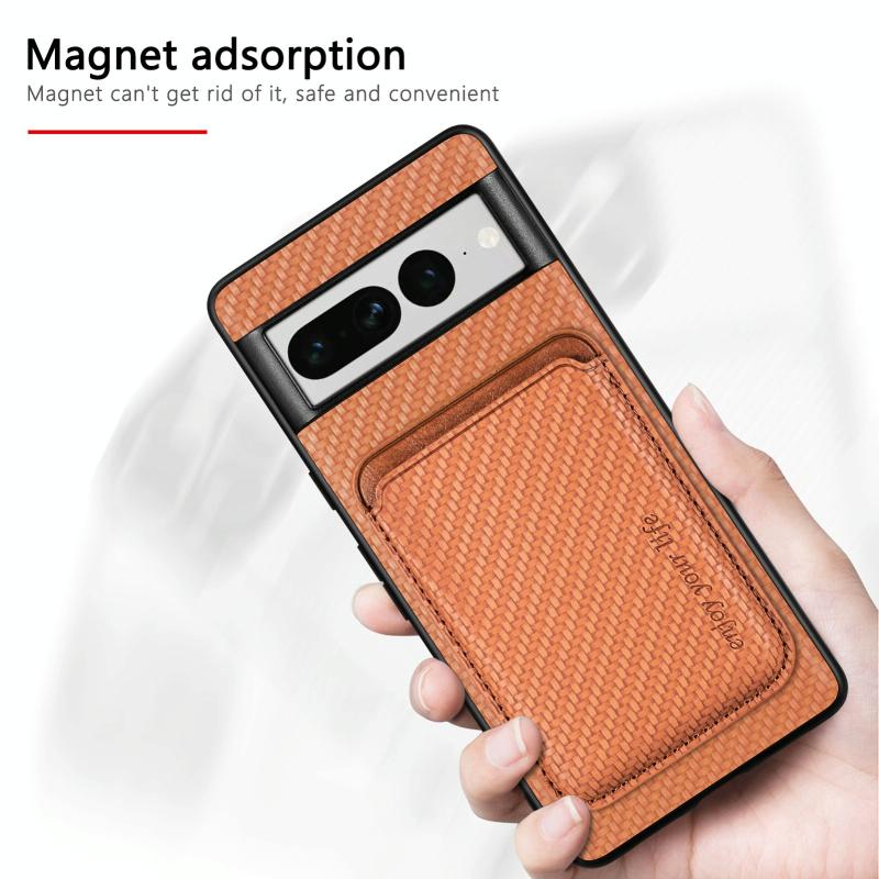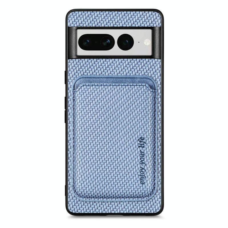 For Google Pixel 7 Pro Carbon Fiber Leather Card Magsafe Phone Case(Blue)