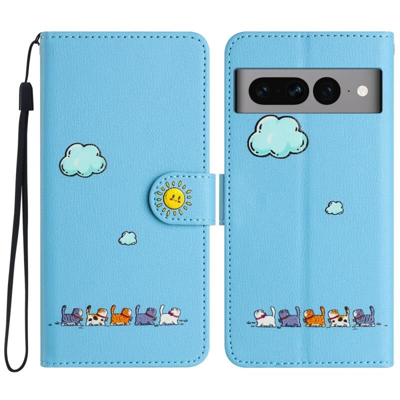 For Google Pixel 7 Pro Cartoon Cats Leather Phone Case(Blue)