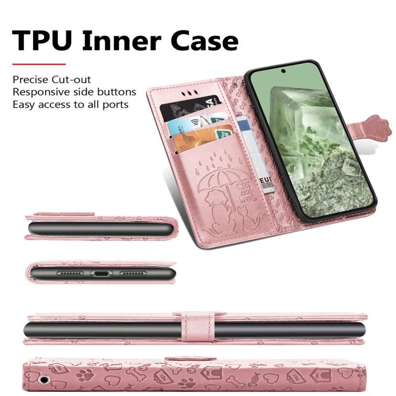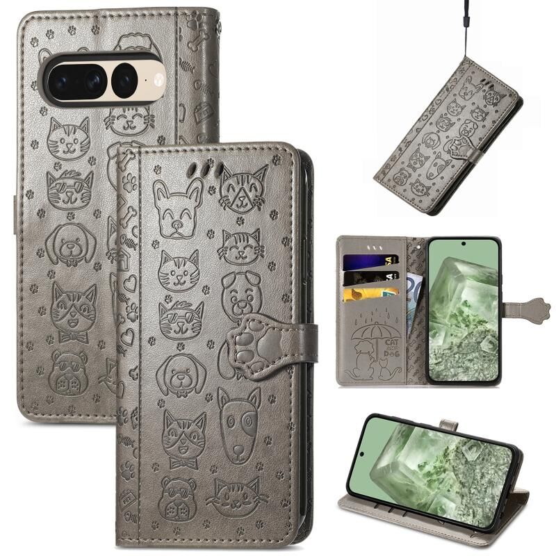 For Google Pixel 7 Pro Cat and Dog Embossed Leather Phone Case(Gray)