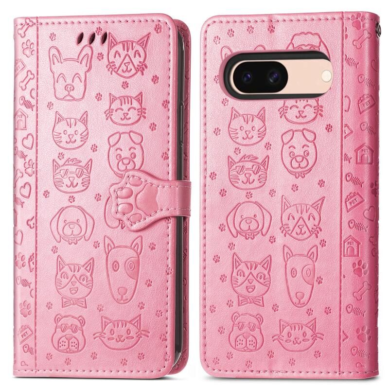 For Google Pixel 7 Pro Cat and Dog Embossed Leather Phone Case(Pink)