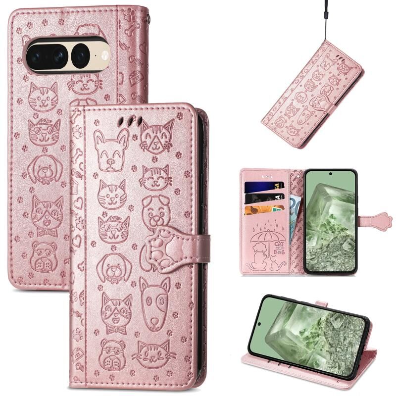 For Google Pixel 7 Pro Cat and Dog Embossed Leather Phone Case(Rose Gold)