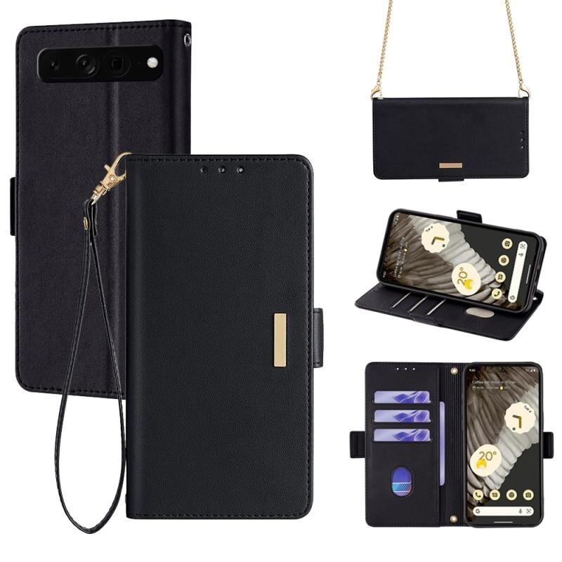Για Google Pixel 7 Pro Crossbody Αλυσίδα δερμάτινη θήκη τηλεφώνου (Μαύρο)
