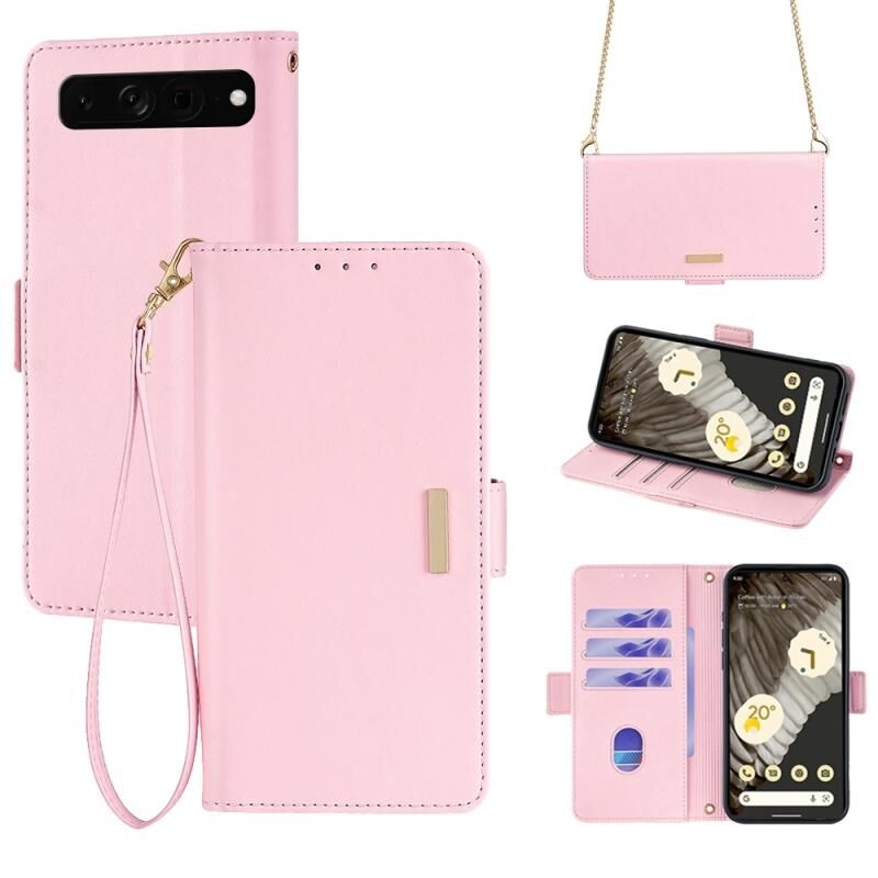 Για το Google Pixel 7 Pro Crossbody Αλυσίδα δερμάτινη θήκη τηλεφώνου (ροζ)