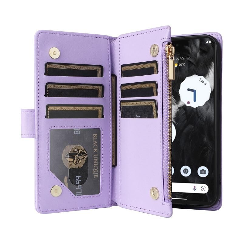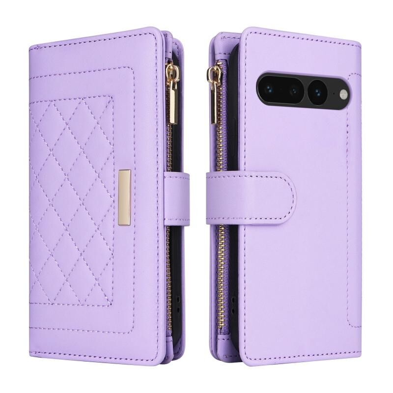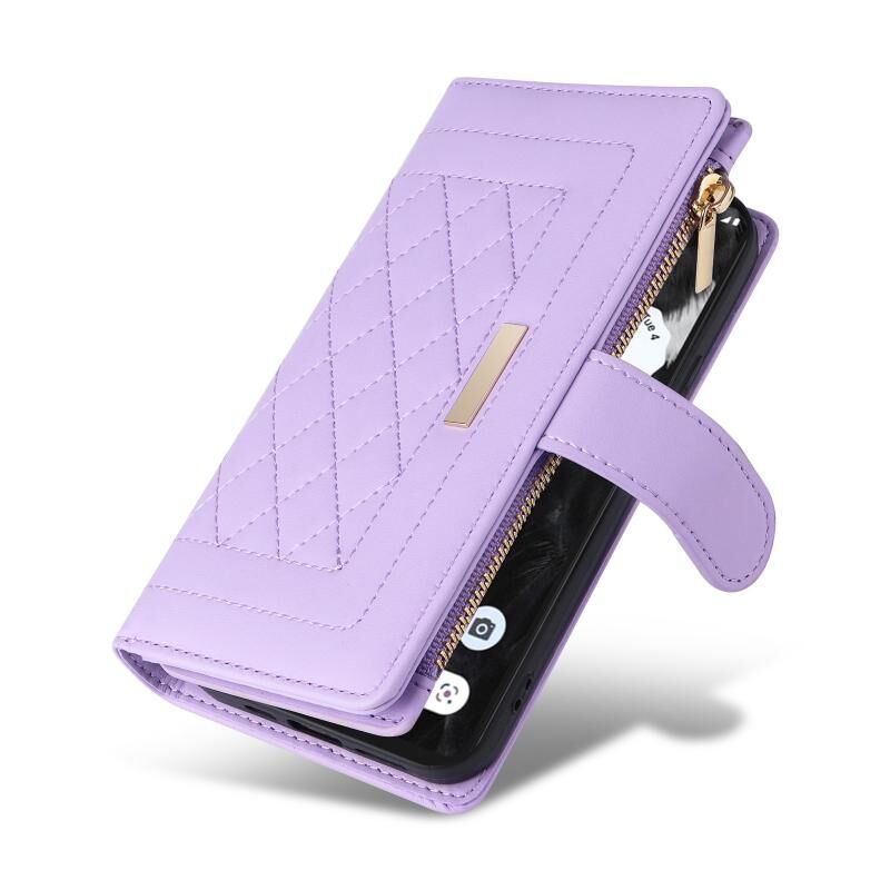Για το Google Pixel 7 Pro Crossbody φερμουάρ πορτοφόλι Rhombus δερμάτινη θήκη τηλεφώνου (μωβ)