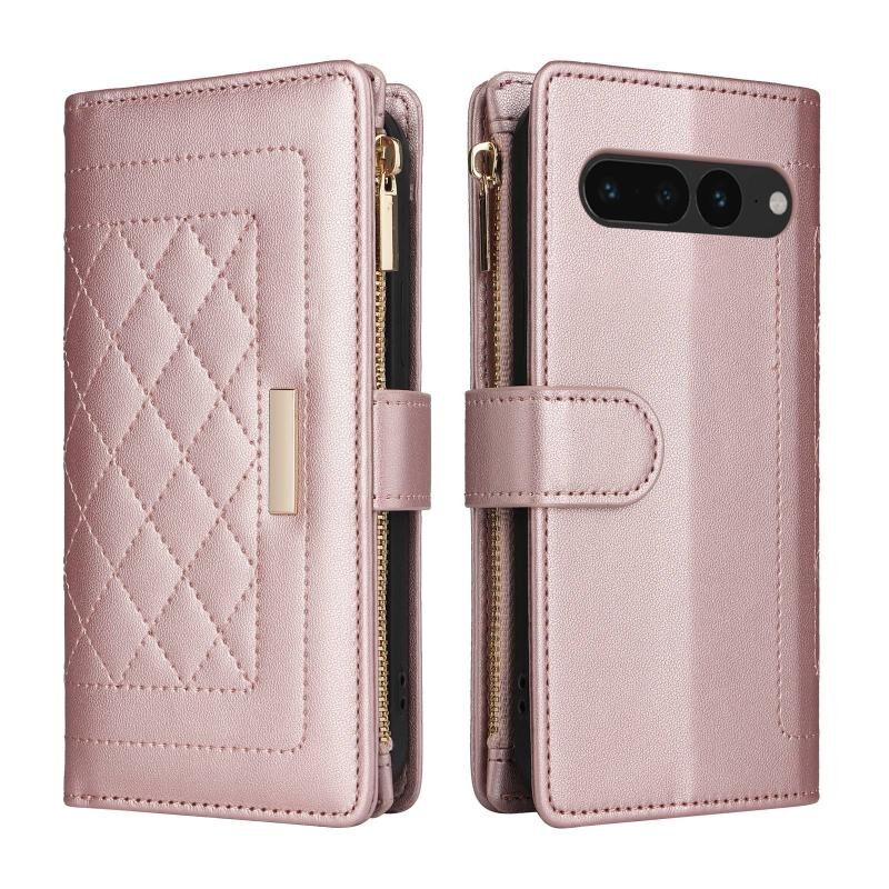 Για το Google Pixel 7 Pro Crossbody φερμουάρ πορτοφόλι ρόμβος δερμάτινη θήκη τηλεφώνου (ροζ χρυσό)