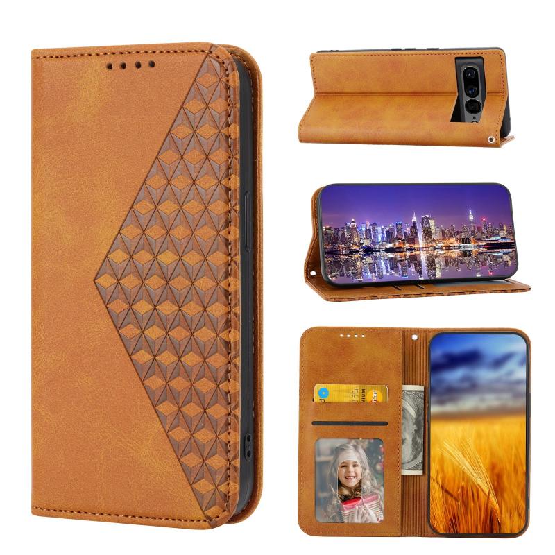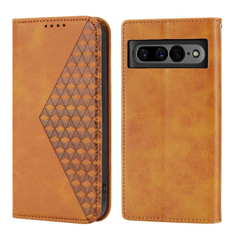 For Google Pixel 7 Pro Cubic Grid Calf Texture Magnetic Closure Leather Phone Case(Yellow)