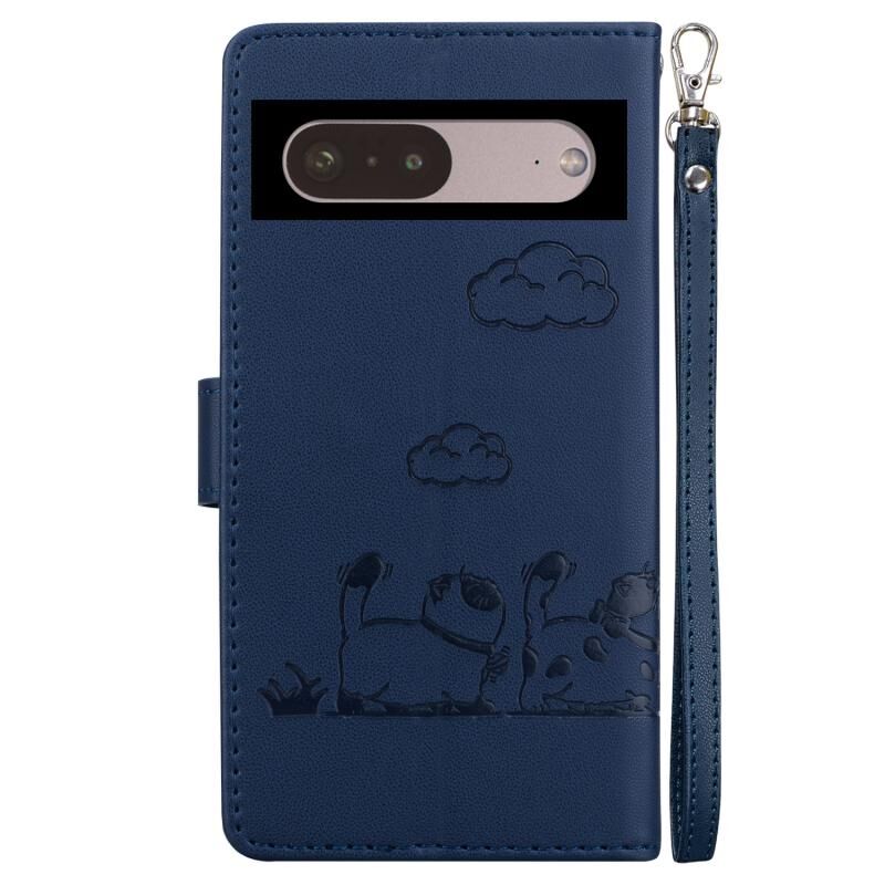 Θήκη τηλεφώνου από δέρμα με χαριτωμένες γάτες για Google Pixel 7 Pro (Χρυσό Ρόδι) με προστασία RFID.