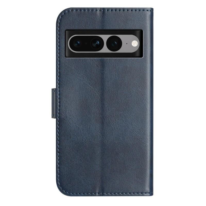 For Google Pixel 7 Pro Dual-Folded S-shape Leather Phone Case(Navy Blue)
